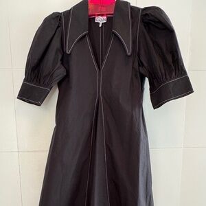 Ganni Black Cotton Poplin V-Neck Dress - EU 36 (US 6)