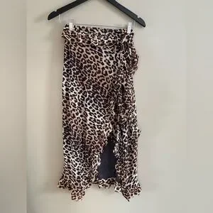 Ganni Leopard Ruffle Wrap Skirt