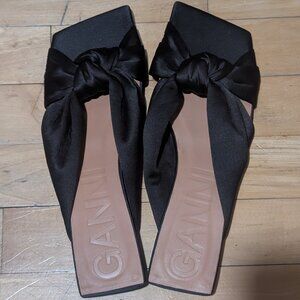 Ganni | Soft Knot Mule Sandals In Black Satin