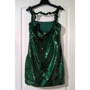 Ganni | Twisted Sequined Satin Mini Dress In Kelly Green