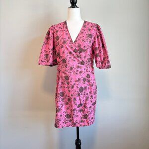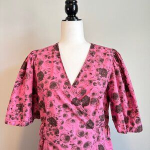 Ganni Women's Size 12 Wrap Dress Cotton Poplin Mini Sustainable Scandi Girl Pink