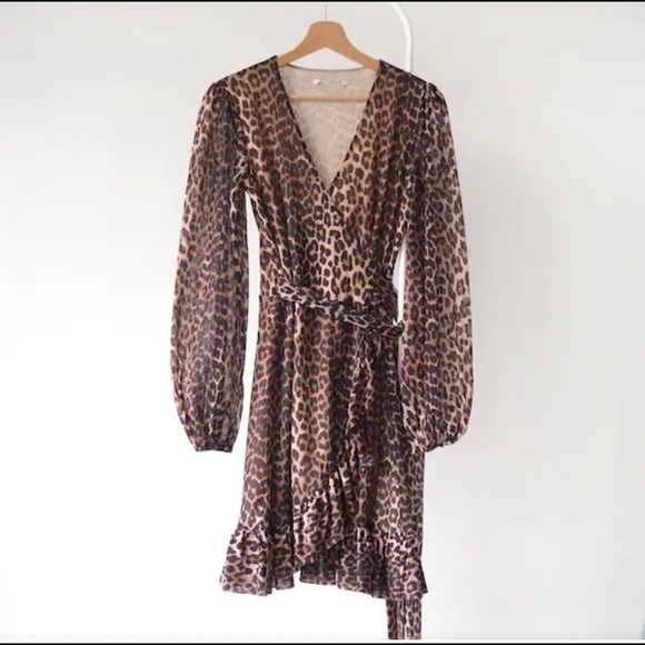 Ganni leopard printed mesh wrap dress. Worn only a few times, excellent condition. Size 34