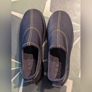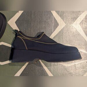 Retro flatform shoes made from a blend of recycled polyamide. Flatform sole, contrast stitching and a pull tab. 5.5 cm heel is super comfortable. Worn only once; simply too big for me. They fit like a large 42 / 11.