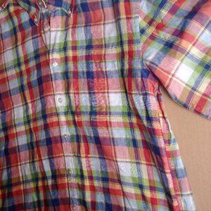 Gant Hampton Linen E-Z Fit Mens Short Sleeve Button plaid 100% linen shi…