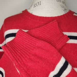 Bright red black & white Striped soft 100% Lambswool Knit long sleeve Polo jumper Sweater with ribbed trim, by GANT, Original American Sportswear.