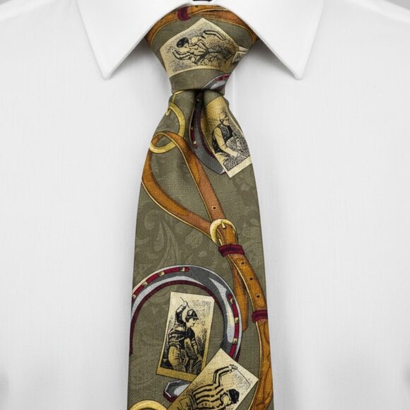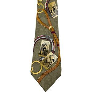 Gant Silk Tie Olive Green Equestrian Horse Racing Buckle Print