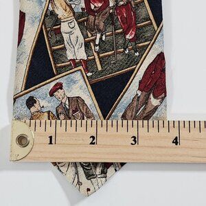 Gant Tie Silk Multicolor Golf Players Print VTG Boho Art to Wear W3.75 L58 inch