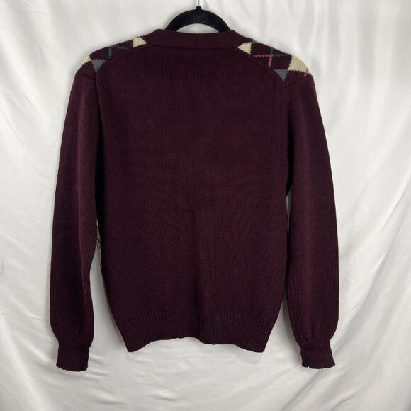 Gant Wool Diamond Argyle V-Neck Prep School Burgundy Sweater Women's Size M