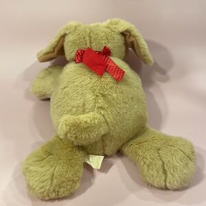 Ganz Floppy Golden Puppy Dog with Red Polka Dot Bow Ribbon Good Used Condition