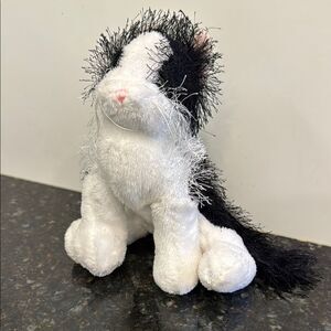 Ganz Webkinz - HM016 Black and White Cat Stuffed Animal - No Code . Size 9”. This charming stuffed animal from GANZ features a delightful black and white tuxedo pattern, perfect for cuddling and imaginative play. Its fluffy, textured fur and detailed design make it a standout addition to any toy collection. With its soft, plush feel, this cat toy is sure to become a beloved companion.