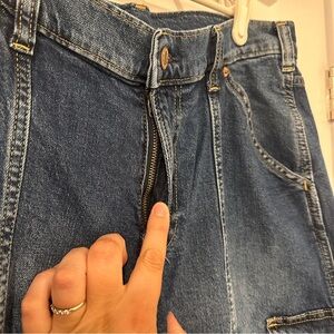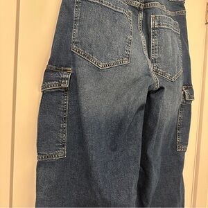 Gap ‘90’s Loose Fit Cargo Mid Rise Blue Denim Jeans Waist 30 Petite Women’s