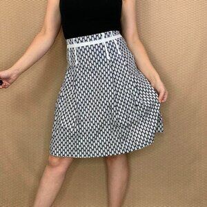 Worn once, like new. Navy and white pattern A-Line skirt with pleated fabric. Elegant and easy to match for business casual