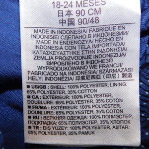 This Baby Girl 18 - 24 months Blue Polka Dot hooded lined Windbreaker Jacket is in Excellent clean bright condition. Jacket is 100% Polyester shell with 65% Polyester / 35% Lining. Machine washable. Features elastic waist hem.