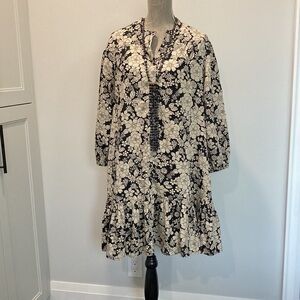 Gap Beige Black Floral BabyDoll Dress Medium Tall