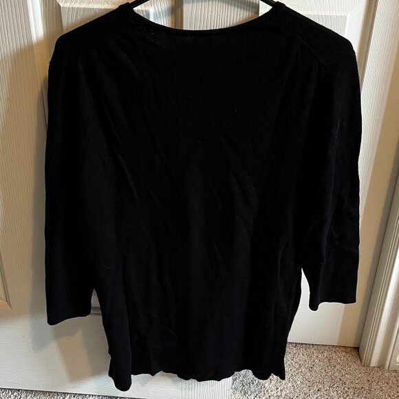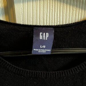 This is a Gap black long sleeve shirt/ lighter sweater. It is a very soft wool sweater. It is a woman's large and has mid-forearm length sleeves. Worn probably 10 times.