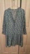 Charming blue dress with a floral pattern. Features long sleeves and a flowing design.