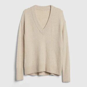 Gap Bouclé Wool Alpaca blend V-Neck Sweater Teal Blue Large