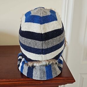 Gap Boy's Winter Trapper Hat With Faux Fur Trim & Scarf One Size Small Blue/Gray