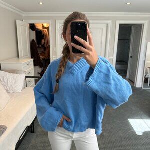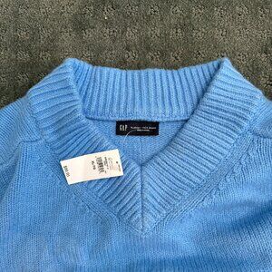 This CashSoft Cropped High V-Neck Sweater features Gap’s signature soft, cozy knit in a modern cropped silhouette. The Union Blue color adds a pop of cool tone that pairs perfectly with jeans or trousers. Designed in a size XL for an effortlessly oversized, relaxed fit.