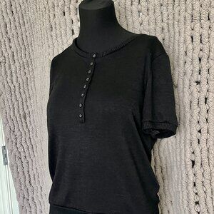 Gap Classic Black Knit Henley Top - Short Sleeve Button Sweater Tee Size M