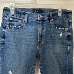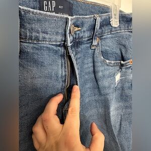 Gap Distressed Girlfriend Blue Denim Loose Fit Jeans Waist 27 Size 4 Womens