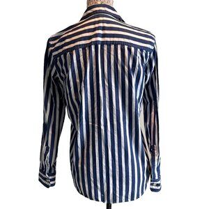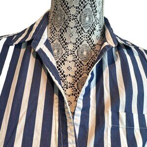 Gap Dress shirt V neck collared Woman’s Small Navy & White stripes fitted