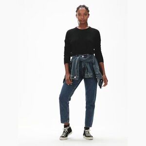 The perfect blend of airy and plush. Versatile and made for layering. Softspun jersey. Dropped shoulder. Long sleeves with banded cuffs. Crewneck. Curved shirttail hem. Longer length.