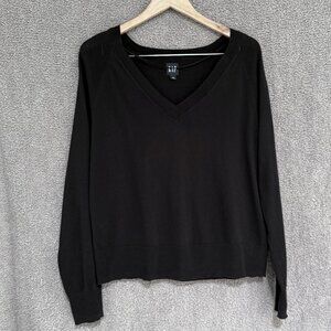 Gap Easy Pullover Cotton Modal blend Vneck sweater Black