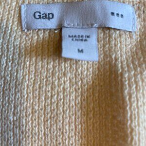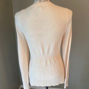 Slightly worn condition, lightweight light peach colour, 6 buttons, 2 front pockets, cotton bland cardigan. Great for summer.