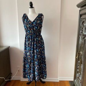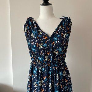 Gap Floral Tiered MIDI Dress Navy Blue v neck with shoulder ties