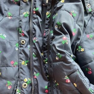 Gap Girls Navy Blue Floral Puffer Coat With Fur Hood Size M