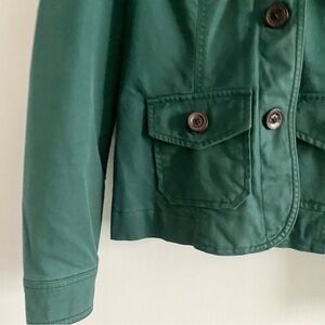Gap Green Cavas Fitted Button Short Jacket Puff Sleeve Cotton Utility Coat