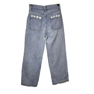 Gap High Rise Wide Leg Denim Blue Jeans Size 26 Embroidered Flowers & Bee