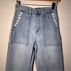 Gap High Rise Wide Leg Denim Blue Jeans Size 26 Embroidered Flowers & Bee