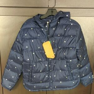 Gap Kids Navy Silver Star Hooded Lightweight Puffer Jacket - Size 12 NWT