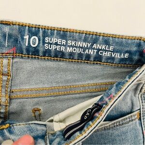 Gap Kids Star Printed Super Skinny Ankle Denim Jeans Light Wash Raw Hems Sz 10