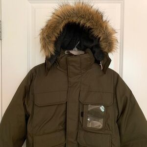 Gap Kids Winter Down Puffer Hooded Parka Jacket in Olive Green Size Large (10 )