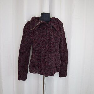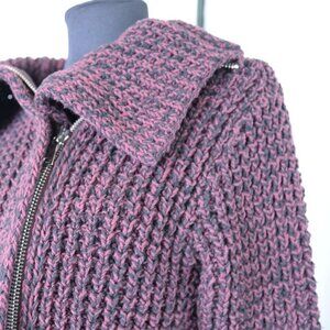 Cozy heavy knit asymmetric zip up sweater jacket from Gap. Can be zipped all the way up for a turtleneck look or worn half zipped with a collar.