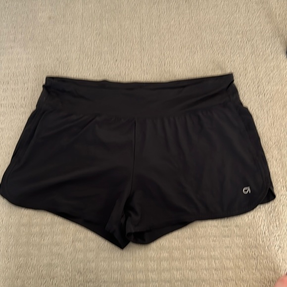 Gap running shorts with built in stretchy lining. Stretch waistband with zipper and small pocket. Outer material is a thin breezy poly blend but is not see-through.