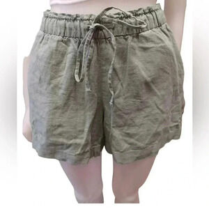 Sage green in color, these shorts feature four pockets and a drawstring, elastic waist.
