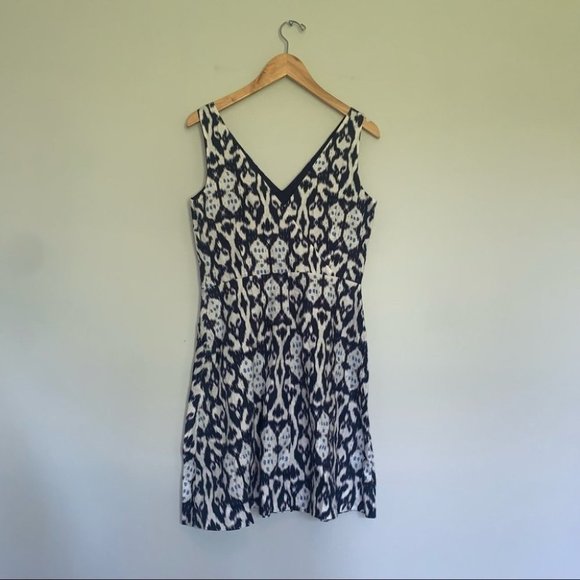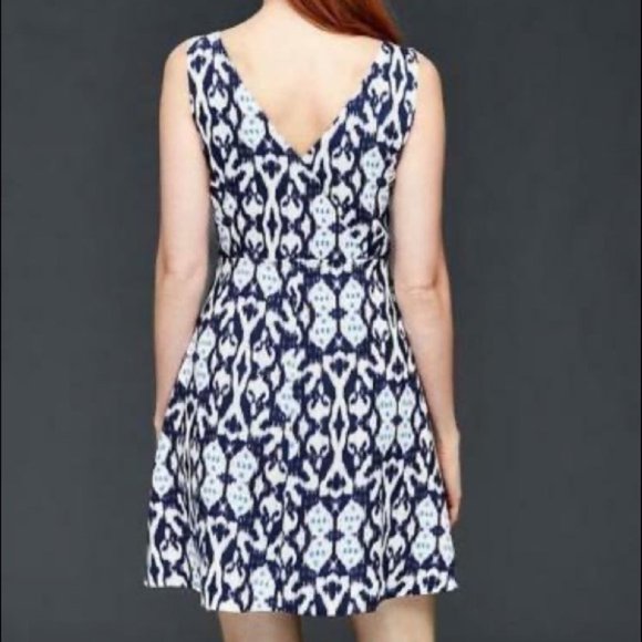Gap Linen Dress Size 4 US Blue White Ikat Sleeveless Pleated Casual Summer