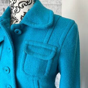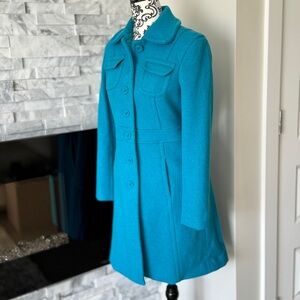 Gap Long Button Up Coat Peacock Turquoise Blue S