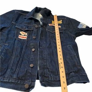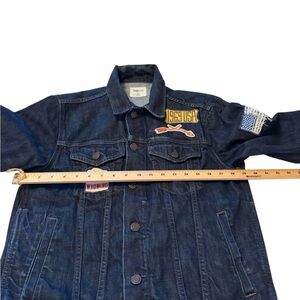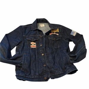 Gap Mens Trucker Jean Jacket-Three Patches on Front-Dark Indigo Color-Size Small