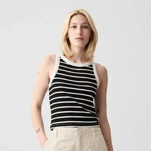 Supersoft ribbed knit cotton-modal blend cropped halter top.