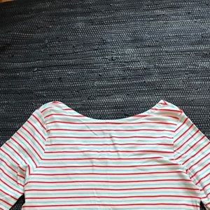 Coastal, beachy vibes. Gap Tee in a blue/red/white stripe. Soft modal/cotton blend. Crew neck in front with slight scoop in back. 3/4 length sleeves. In excellent used condition. 58% Cotton, 39% Modal, 3% Spandex. XXL