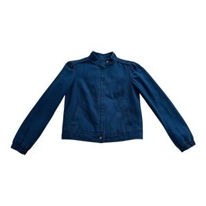 Gap Moto Jacket Mock Neck Zip Up Long Sleeves Linen Blend Blue Womens Small