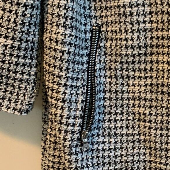 The Gap, size medium, knee length, 3/4 sleeve day dress, sheath silhouette, working zippered front pockets, slight lurex type sparkle in fabric of black and white houndstooth. New, still with tags. Updated classic for your wardrobe. Add over the knee boots or chunky shoe, awesome jacket (like the Armani shown here from Our Closet not included in price), a few outstanding jewellery pieces and you are set for date night, lunch with the ladies, board meeting, or shower. Choose completing pieces from Our Closet (some suggestions shown all listed and priced separately), make a bundle to save a bundle. There's always something Fresh from Lemon Squeezy Shop🍋