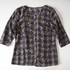 Gap Navy Blue Beige Tan Silk Cotton Blend Print Pattern Spring Summer Blouse