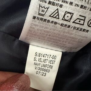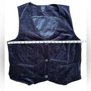 Add a little luxe to your layering with this stunning navy blue velvet vest by Gap. Featuring a classic three-button front and a sleek, tailored silhouette, it brings a polished touch to any outfit — whether you’re rocking it solo or layering it up.