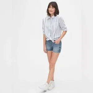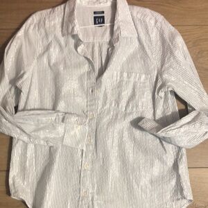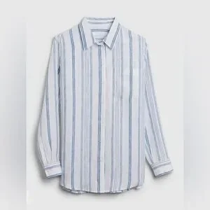 Gap | Oversized Boyfriend Linen Shirt | Gray Stripe | M